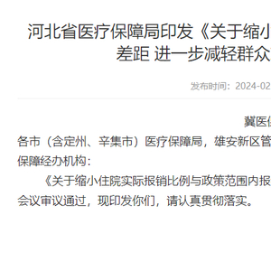 河北省医疗保障局印发《关于缩小住院实际报销比例与政策范围内报销比例差距 进一步减轻群众就医负担的若干措施》的通知↓↓↓