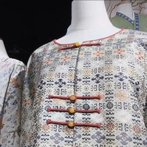张志晓称,因为今年是龙年,所以龙的传统纹饰更受欢迎。“今年的服装男士中华小立领较多,上面有很多吉祥的纹饰,如江水海牙、云纹;女士们更喜欢艳丽的色彩,比如宋锦,各种色彩都有。”