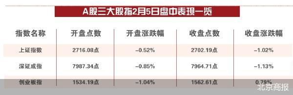 2月5日,A股市场出现探底回升,三大股指收盘涨跌不一。
