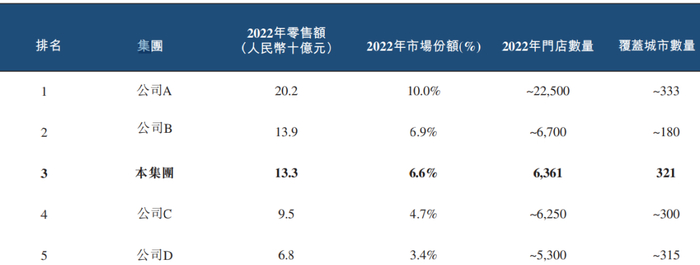 据弗若斯特沙利文报道,2020—2022年,茶百道门店的零售额年复合增长率在全国前10大新式茶饮企业中增速最快。2022年,茶百道在国内新茶饮市场的市场份额约为6.6%,排名第三。