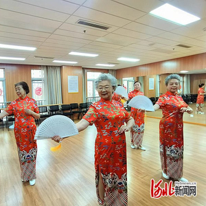 一水儿的红色旗袍、珍珠耳环、白色折扇……当记者如约走进温暖的舞蹈教室,被眼前的漂亮奶奶们惊艳了。