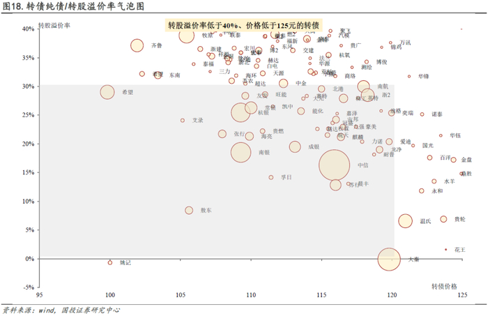 2)防守。如果对回撤要求较高,那么重点在于防守而非进攻,因此需要考虑权益市场持续调整带来的进一步回撤影响,此时需要关注的是纯债溢价率而非YTM,纯债溢价率越逼近0、则相对来说越安全,同时需要考虑个券潜在的信用风险。如果可以容忍一定回撤,也希望博取权益反弹时的收益,此时需要对价格、纯债溢价率、转股溢价率进行综合考虑,适当放宽对YTM的要求。
