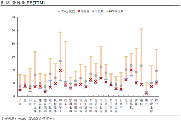 大部分板块估值继续回落。上周随着市场的加速调整、各板块估值继续回落,跌幅靠前的社会服务、计算机、轻工制造板块估值分别回落3.29X、5.88X、2.27X。目前各板块估值均处于历史中位数以下,有将近三分之二的板块估值已经处于历史10%分位数以下,整体估值仍然在不断创下新低。