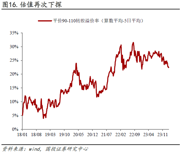 一周市场回顾:上周转债指数跌幅远小于股指、扛跌属性明显;估值方面,平价90-110转股溢价率为22.9%、价格中位数107.5,快速下探。