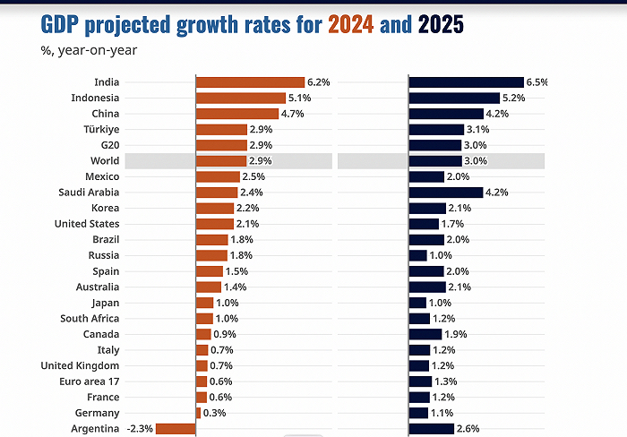 经合组织上调2024年全球经济增长预期:看好美国、看淡欧洲