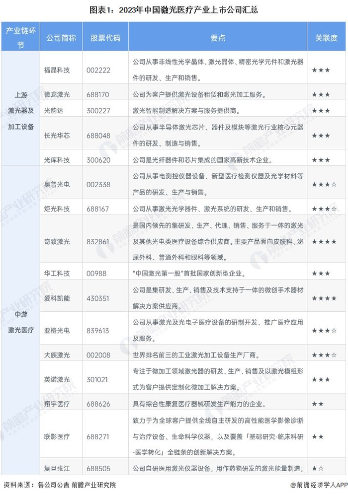 激光医疗行业上市公司汇总