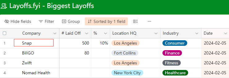 2月5日 :Snap计划裁员约528人,占其全球员工总数的10%。
