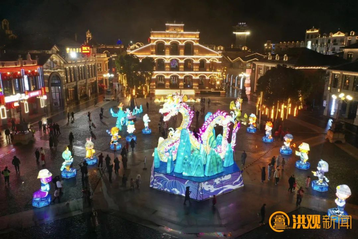在万寿宫历史文化街区的东福井下沉广场,一条中型“蛟龙”映入眼帘,只见“蛟龙”龙头昂扬向上、尾巴微微翘起,LED光源、智能控制系统等现代科技的应用,使得灯饰更加生动、有趣,与墙体景观灯相互映衬,点缀着城市的夜景。“这些灯饰不仅融入了传统文化元素,还充分运用了现代科技手段,让市民们感受到传统与现代的完美结合。” 江西万寿宫文旅商业管理有限公司总经理章珂说。