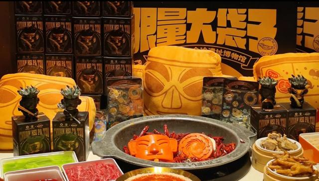 联名套餐内含大金面具牛油底料、太阳神鸟牛油底料,精致还原文物风貌;抢先体验“金沙肠宝”“金面虾滑”等联名菜品;绝版限量周边:联名“火锅立人”手办盲盒或联名显眼包+四宫格抱枕+联名贴纸2选1。该套餐川西坝子成都6家店通用。