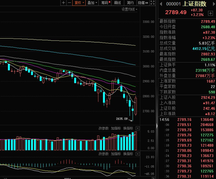 今早股指集体低开后,受到中央汇金宣布加码增持ETF基金消息刺激,多只中证1000、中证500创业板指数ETF基金再度大幅放量,锂矿、医药、医疗保健、AI等板块权重股发力,带动深成指、创业板指盘中双双涨超3%,进而带动沪指盘中扩大涨幅至1%以上。午后受到证监会宣布暂停新增券商转融券规模的消息刺激,创业板、科创50、深成指扩大涨幅至6%,沪指涨超3%。沪深两市今日成交额9263亿,较上个交易日放量489亿。截至收盘,沪指涨3.23%,深成指涨6.22%,创业板指涨6.71%。