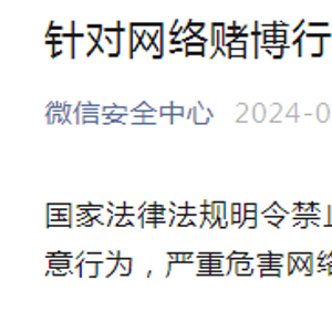 近日,“微信安全中心”微信公众号发布针对网络赌博行为的治理公告。