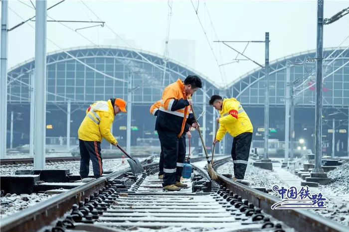 武汉、广州局集团公司组织车站、通信信号、线路等单位成立扫雪应急队伍,配备打冰扫雪工具,加强对隧道口、跨线桥、重点线路等关键区段巡查力度;组织人员对机车顶部、撒砂装置、制动管路等进行重点检查,及时清扫转向架、踏面等部位积冰积雪,确保设备设施运行良好。济南局集团公司兖州工务段组建了18支除雪小分队,根据降雪情况加密设备巡查。青岛工务段提前储备吹雪机21台、防冻液3吨以及各类扫雪除冰工具,及时做好扫雪除冰工作。济南通信段通过智能监测系统,对铁路沿线雨、雪数据实时监测,为行车组织提供参考。青岛北动车所组织500余名动车组机械师对47列66组动车组进行全面整备,确保状态良好。郑州局集团公司加强对机车、车辆的检修维护力度,加密车灯、受电弓等关键设备和空调、茶炉、照明等服务设施检查频次,提升入库检修质量,确保列车安全上线运行;组织2列打冰车,对郑太高铁线路接触网进行除冰作业,自降雪以来已累计开行打冰车148列,对京广高铁、济郑高铁等6条线路接触网进行除冰作业。南昌局集团公司针对赣北地区降雪天气,组织了近7000人的应急队伍,备足铁锹、融雪剂等扫雪除冰工具物资,安排19组除冰机车、55台应急内燃机车待命,随时上线融冰除雪。太原、济南、成都局集团公司加强电煤、工业用盐等重点物资运输组织,为人民群众温暖过冬、欢度春节提供运输支撑。