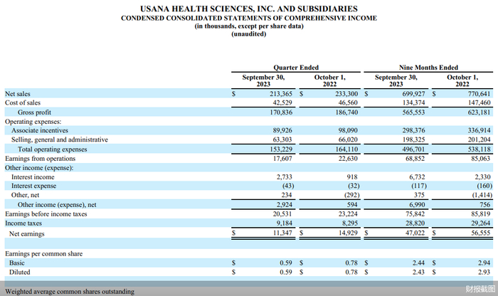 葆婴母公司USANA2023年财报披露在即,前三季度营收下滑9%
