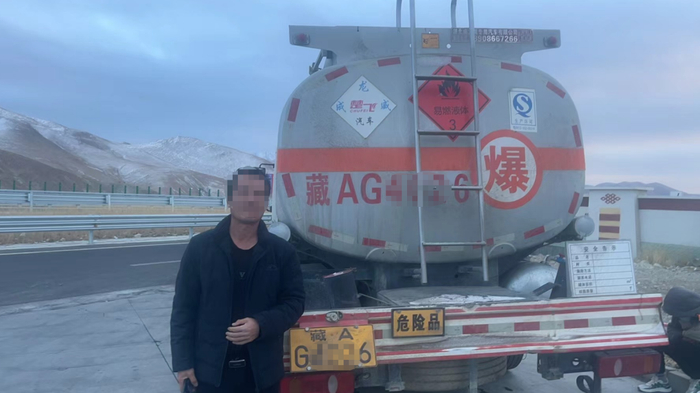 近日,拉萨交警支队拉那高速大队民警在辖区内开展巡逻工作时,于G6京藏高速公路北向南3777km羊八井服务区处,发现一辆车牌号为藏AG***6重型罐式货车(危化品运输)存在违反禁令标志上高速的违法行为。
