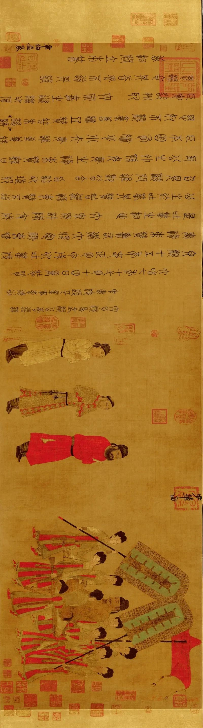 传为唐时“丹青宰相”阎立本所绘《步辇图》,一般认为是以松赞干布和文成公主联姻的故事为题材,是现存最早记录汉藏人民友好往来的历史画卷,对后世产生了深远的影响。