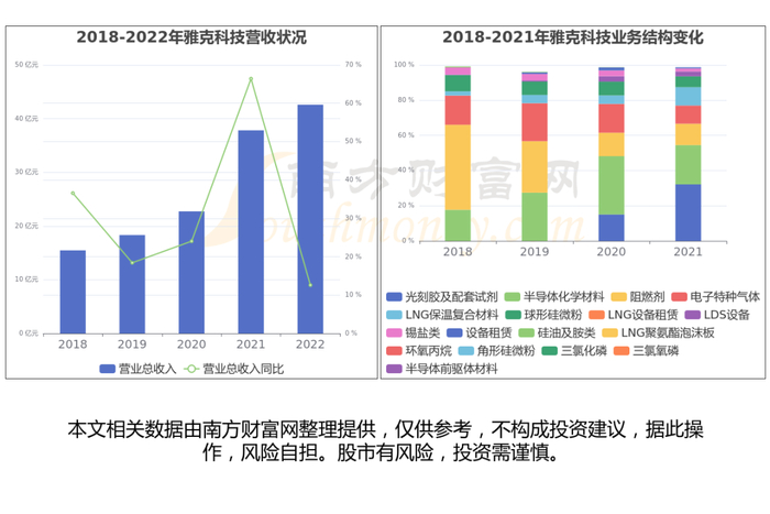 雅克科技创始于1997年10月29日,2010年5月25日在深圳证券交易所上市,股票代码002409。公司主营业务为电子材料业务、LNG 保温绝热板材相关业务和阻燃剂业务。