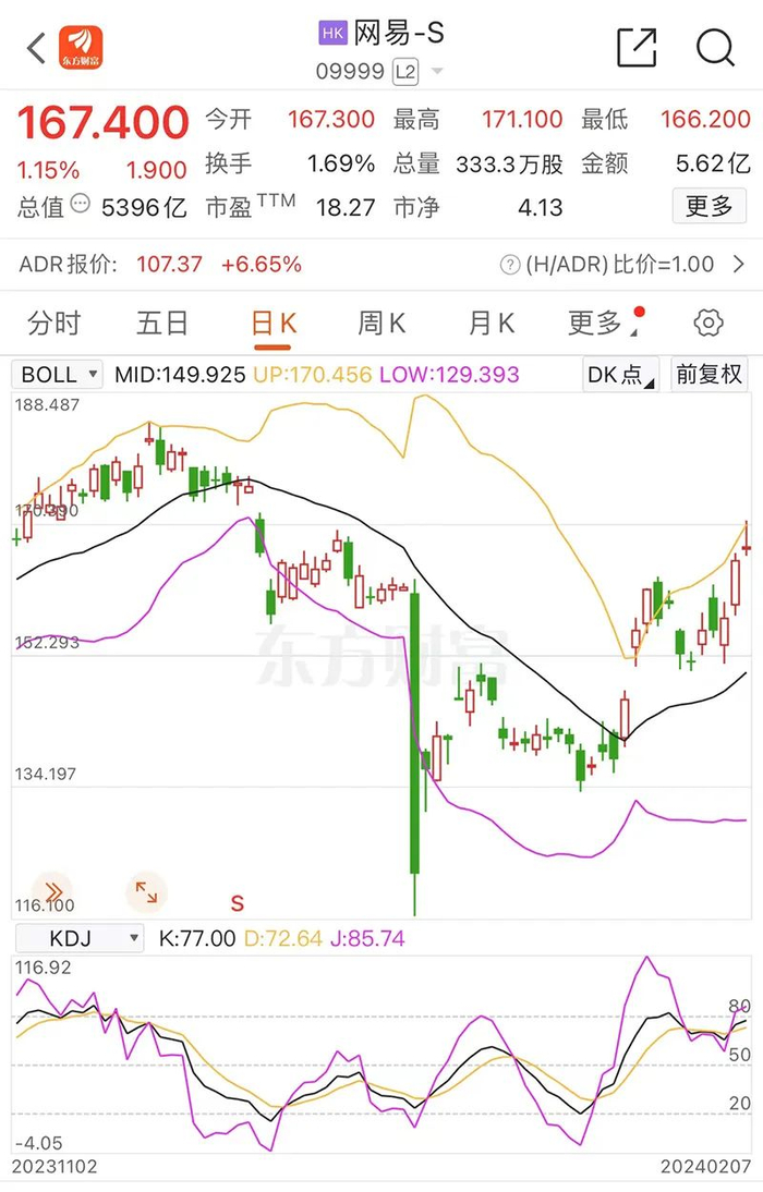 截至发稿,网易-S涨1.15%,报167.4港元/股,总市值5396亿港元,但成交额低至5.62亿港元。目前,网易总市值超过美团(总市值约为4293亿港元),成为腾讯、阿里、拼多多后国内第四大已上市的互联网公司。