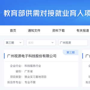视源股份入选教育部就业育人项目 已与超12所高校达成合作