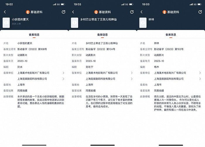 2023年Q4,上海美术电影制片厂(上美影)、上海宽娱数码科技(B站)共同备案了3部作品,分别是《林林》《乡村巴士带走了王孩儿和神仙》《小妖怪的夏天》。据悉,这三部影片均改编自上美影与B站联合出品的国产动画短片合集《中国奇谭》中的一集。