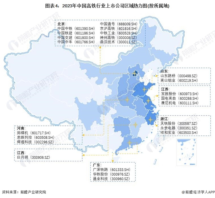 高铁产业链区域热力地图:集中于东部交通枢纽地带