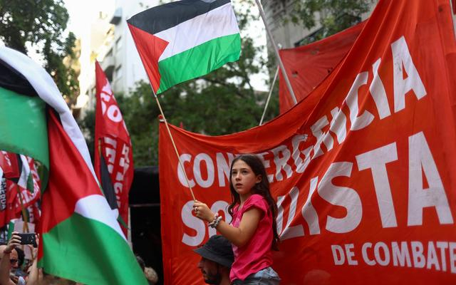▲当地时间2024年2月5日,阿根廷布宜诺斯艾利斯,亲巴勒斯坦示威者抗议阿根廷总统米莱访问以色列和耶路撒冷。图/IC photo