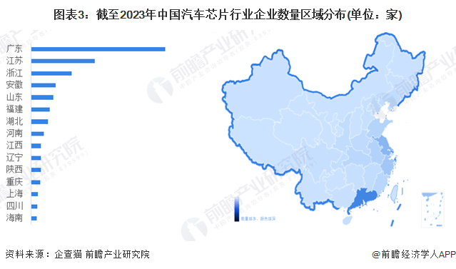 3、汽车芯片产业链企业区域热力地图:东南沿海地区集聚