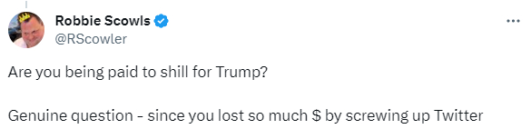 另一方面,也有部分人对马斯克的帖文提出质疑。有人留言说:“有人付钱让你为特朗普打广告吗?真实问题——因为你搞砸了推特,损失了那么多钱。”
