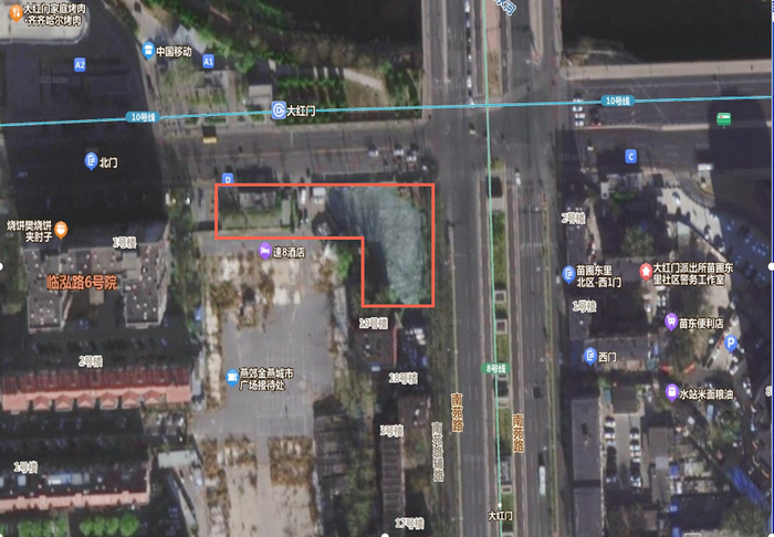 8号线三期大红门站剩余附属工程位于临泓路与南苑路道路交叉口西南侧,其施工内容包括:换乘通道明挖段施工、换乘通道接10号线暗挖段施工、换乘通道接8号线暗挖段施工、换乘通道与既有10号线D口相接段施工。