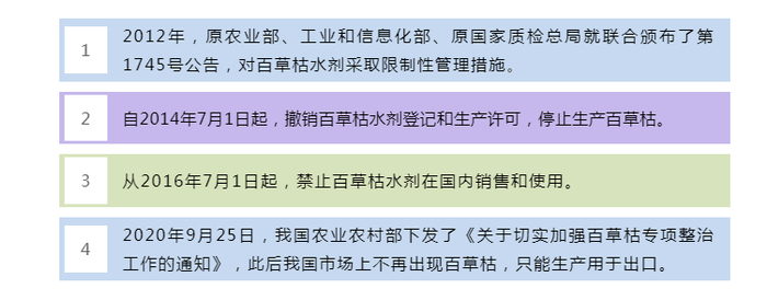 因百草枯毒性极高,对生态环境、生命安全构成重大风险,我国已禁止百草枯在国内销售、使用。
