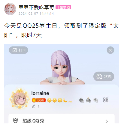 对此,腾讯QQ回应:这次是真的!为庆祝腾讯QQ25周年生日,官方面向所有用户推出“转发得太阳头像挂件”的活动。