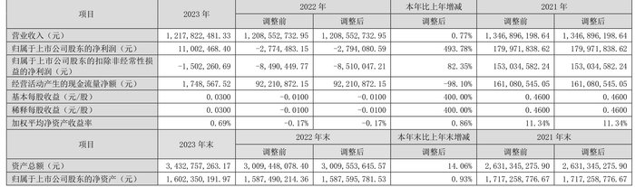 2023年,公司经营活动现金流净额为174.86万元,同比下降98.10%;筹资活动现金流净额-3251.61万元,同比减少3.32亿元;投资活动现金流净额-2.29亿元,上年同期为-1.89亿元。