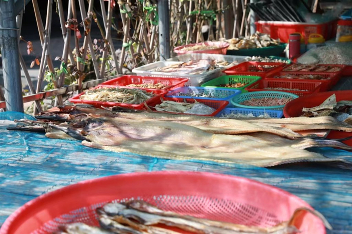 走在沪杭公路上,红色灯笼和中国结一路延伸,一排排海鲜年货一字排开,还有不少村民聚集在一起,腌制新鲜的海产品,市民游客在摊位前选购心仪的海鲜年货。