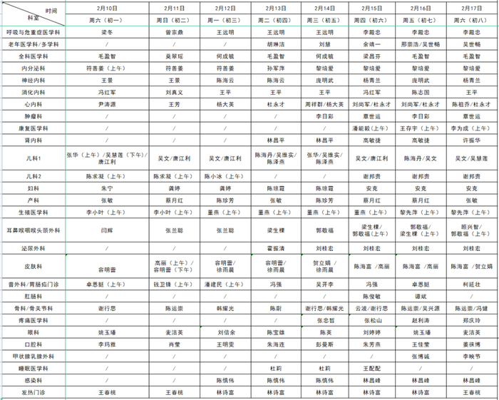 ·2月10日至12日(大年初一至初三)、2月17日(大年初八)停诊。