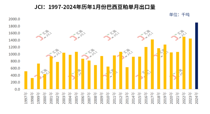 2024年1月巴西大豆豆粕出口继续呈现反季节增长