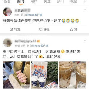 有人吐槽“好想去做纯色美甲,但已经约不上趟了”、“美甲约了三天了,还约不上”;有人暗自庆幸“还好我妈一个月前就和美甲店约好了,明天去了”;动手能力强的甚至开始自力更生“美甲店约不上,自己动手,还算满意”。