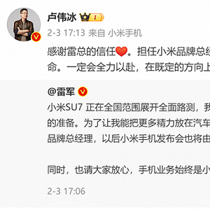 2月3日下午,正值打工人们为春节返乡忙碌时,雷军突然发布了一条微博:“小米SU7正在全国范围展开全面路测,我们目前正在紧锣密鼓地为小米SU7上市做最后的准备。为了让我能把更多精力放在汽车业务上,公司决定,集团总裁卢伟冰兼任小米品牌总经理,以后小米手机发布会也将由他主讲,第一场就是小米14Ultra。”