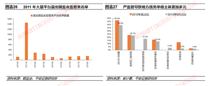 1)10年10月发布的银监办发[2010]309号文:首次提出“明确平台名单”,也隐含了退出平台名单的要求,实际上10年9月即有平台退出名单。