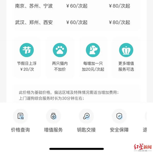 前几年的上门喂养,很多宠主会有所忌惮,担心陌生人进门。“基本上我都是熟人介绍,也会全程录像,宠主可以看房内实时监控。”高小姐介绍,根据服务内容、宠物数量价格从几十元到上百元不等,“宠物主人提供饲料,宠物是否需要外出遛,环境是否需要打扫等内容不同,相应的价格也不同。”
