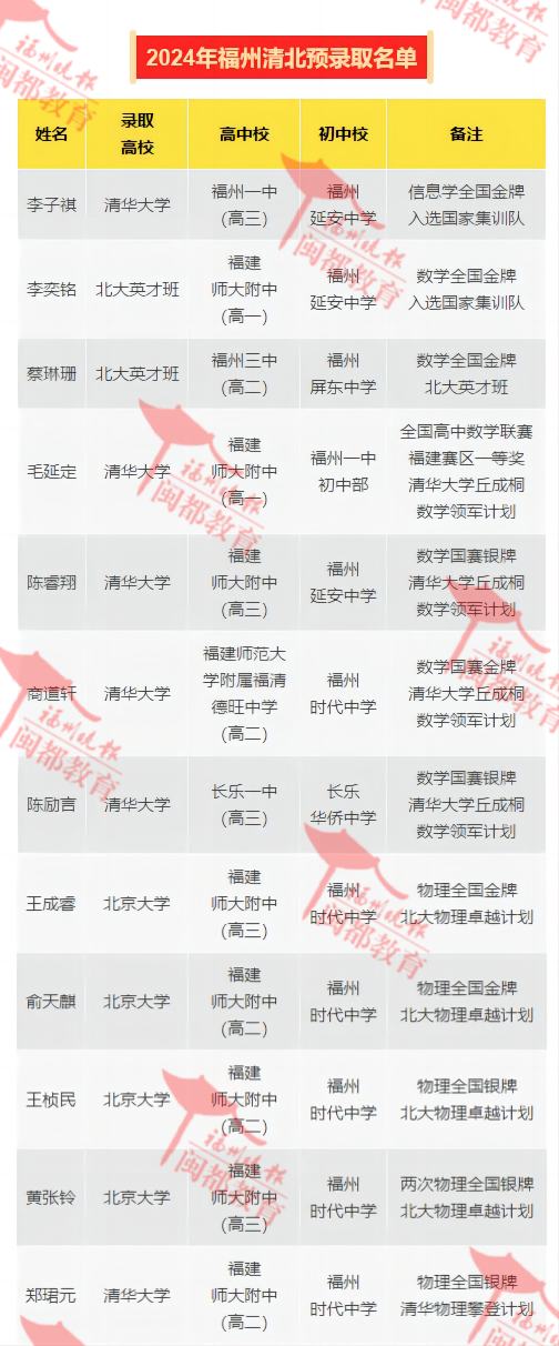 截至目前,福州已有12名学生被保送或录取至北京大学和清华大学,人数创下历史新高,也是全省最多!