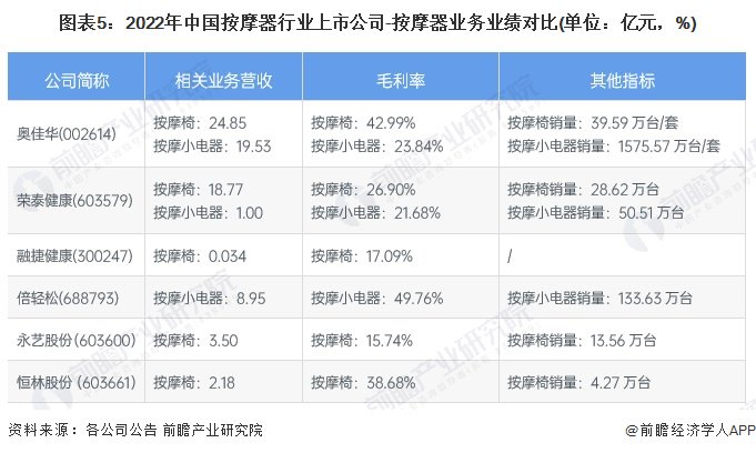 按摩器产业代表性企业业务业绩情况