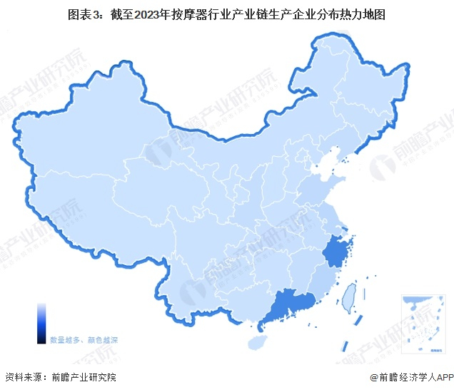 按摩器行业产业链区域热力地图:浙江和广东分布最集中