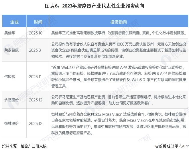 按摩器产业代表性企业最新投资动向