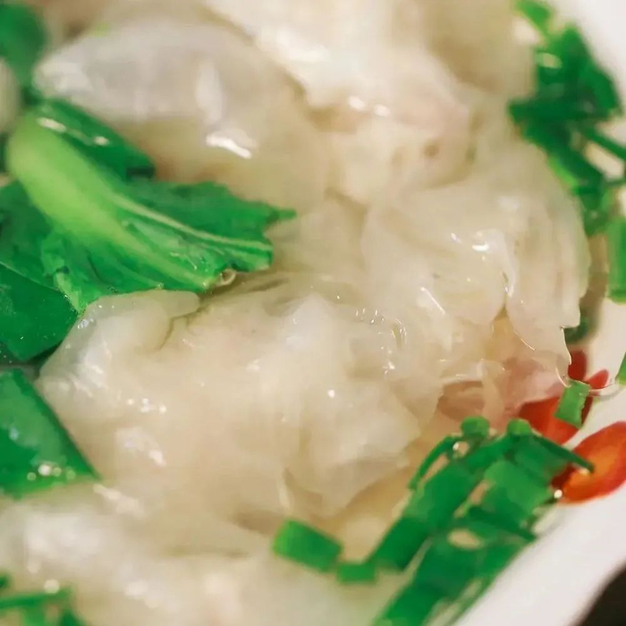 馄饨皮薄透亮,馅料香糯,馄饨皮要擀上2小时。因为皮薄如纸,只需在沸水中过10秒,就得捞上来,煮好后的馄饨会跟降落伞似的浮在锅里。趁热舀起,馄饨就着汤吸入口中,滑溜的皮在抿嘴间片刻即化。