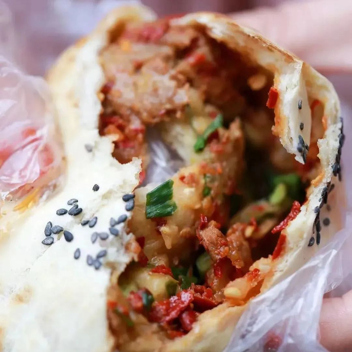 小烤饼,以五花肉和香葱作馅,肥瘦相间的五花肉、绿得发亮的小香葱,包成手心般大小,撒芝麻,拍水,最后放入炭炉烤制。大烤饼以梅干菜和肥肉为馅,一口下去,烤得焦黄的薄薄的面皮被咬破,经烘烤的肥肉化成了油,渗入面粉制成的烤饼表皮。