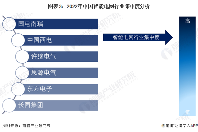 结合智能电网的投资规模以及各大企业智能电网领域的营收排名可以对中国智能电网行业的市场集中度进行分析,可以认为我国智能电网领域的市场多被实力较强的厂商占据,因此我国智能电网行业市场集中度较高。