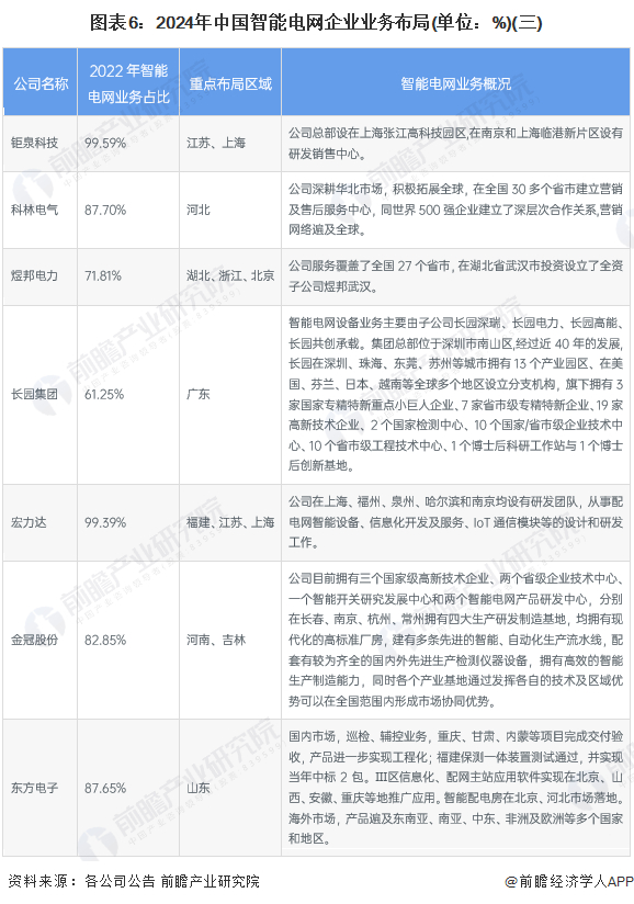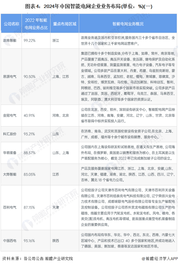 从中国智能电网行业厂商的业务布局情况来看,多数厂商均在其总部所在区域进行布局的基础上,在国内多个地区设立生产基地以及销售中心,除此之外,迦南智能、思源电气、中国西电等代表性厂商已逐步在产品和服务上实现海外布局。
