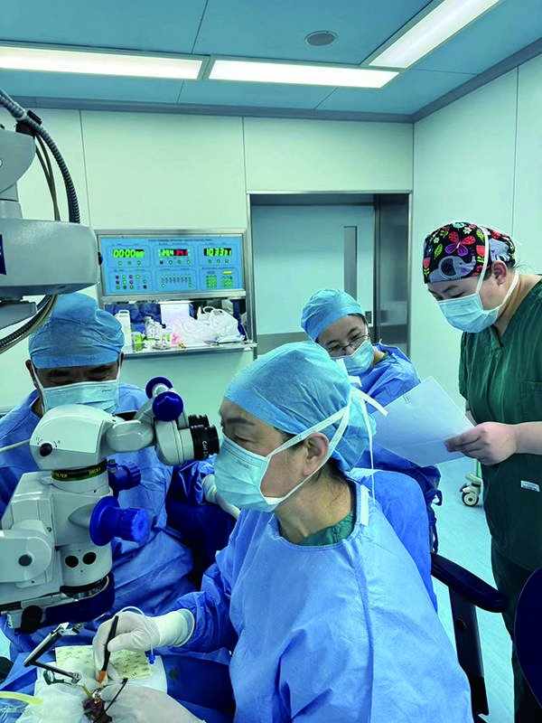 在玻璃体视网膜手术中,有时会发现大量浓密玻璃体积血,这将导致主刀医师无法从视觉上区分玻璃体和视网膜。如果区分不清,手术愈后会有巨大的隐患。在积累了较多的手术经验后,林安娟向丈夫看齐,也开始了自主创新科研。“我采用‘垂直’挖掘法,在眼球的鼻侧制造一个漏斗型井,直到可以看到视网膜位置,再进行平面切割,这样可以尽量避免视网膜损伤。如果造成了一个裂孔,相对而言较小,而且是视网膜上不重要的部位,这样就把损伤降低至最低限度。”林安娟告诉笔者。
