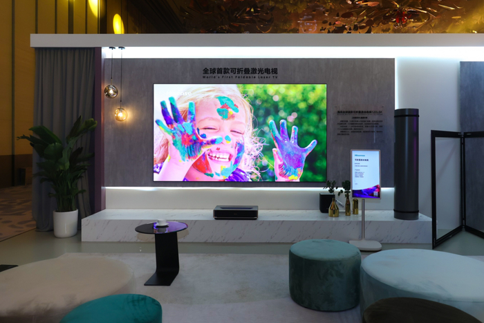 这不是海信的全部表现。2023 年,在坚持出海和用户场景驱动的创新前提下,海信打出了一张又一张的「王炸」,除了 Mini LED 电视,在公认的下一代显示技术——激光电视上也拿出了最强的产品阵容:全球首款 8K 激光电视、全球首款可折叠激光电视、车载激光显示方案……也顺势继续拿下了「全球第二」。