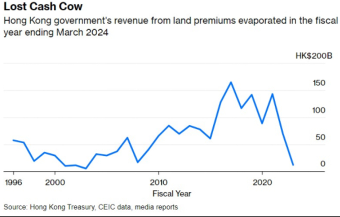 截止2024/03的财年,香港特区政府土地收入殆尽