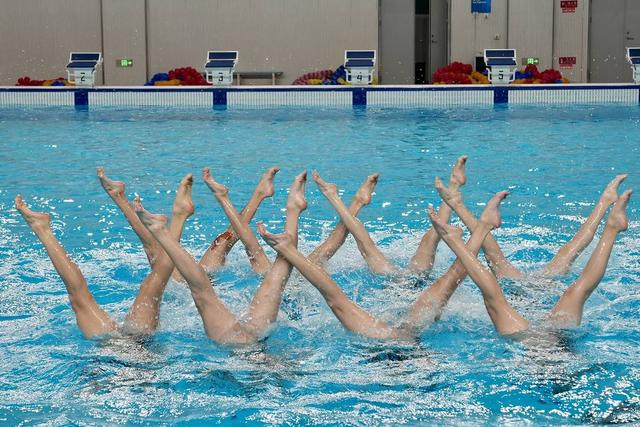 四川花样游泳队正在进行训练